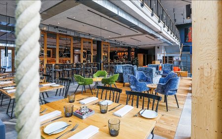 Unser Restaurant Die Turnhalle ist offen für alle, für Hotelgäste ebenso wie für unsere Nachbarn. In sportlichem Ambiente erwarten Sie Bar, Restaurant und Lounge. Großformatige schwarzweiße Turnerfotos und Basketball-Bodenlinien an den Restaurantwänden unterstreichen den coolen Stil. Eine Sitzbank hängt an Turnerringen von der Decke. In der Lounge sitzt man zum Apero in bequemen Sesseln vor der doppelstöckigen Fensterfront zum angrenzenden Park direkt am Fußweg zur Altstadt Schwelms.